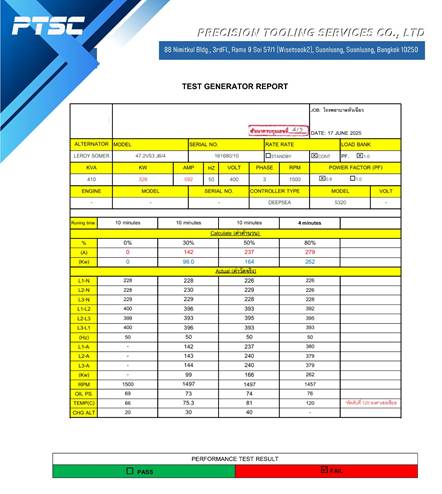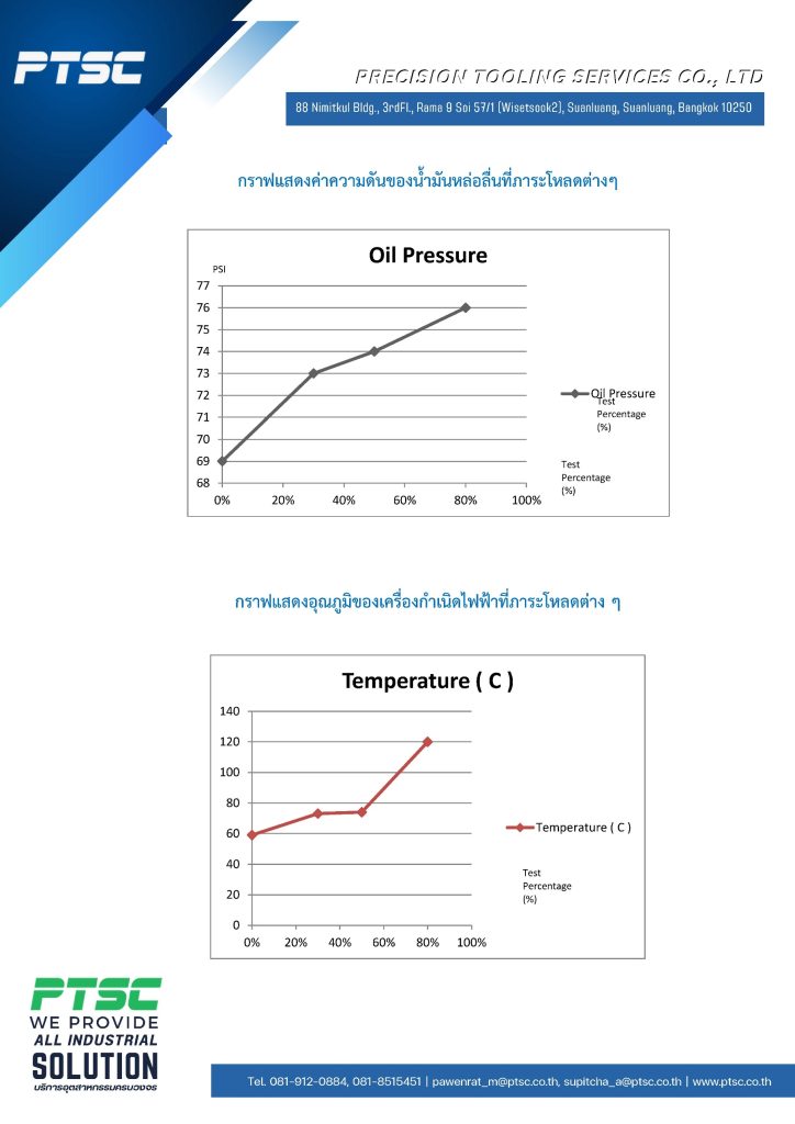 ผลการทดสอบพบว่า ที่ระดับโหลด 80% เครื่องมีอุณหภูมิสูงถึง 120°C ซึ่งเกินค่าที่ตั้งไว้