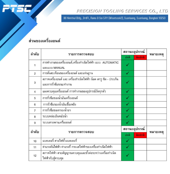 บริษัท Precision Tooling Services Co., Ltd. (PTSC) ดำเนินการตรวจสอบและบำรุงรักษา
